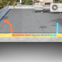 Assèchement d’isolant sous étanchéité de toiture terrasse. Après une infiltration sous une membrane de toiture terrasse, les isolants (polystyrène expansé, laine de roche) peuvent être sauvés avec un assèchent technique.